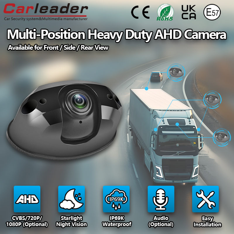 వాహన రంగంలో, కార్లీడర్1080P AHD స్టార్లైట్ సూపర్ వైడ్ యాంగిల్ రియర్ వ్యూ కెమెరాట్రక్కులు, బస్సులు, పాఠశాల బస్సులు, RV ఇంజనీరింగ్ పరికరాలు మరియు ఇతర భారీ వాహనాల్లో విస్తృతంగా ఉపయోగించబడతాయి. ఇది ఫ్రంట్, సైడ్ మరియు రియర్ వ్యూ కెమెరాగా ఉపయోగించబడుతుంది మరియు వీడియో రికార్డింగ్, రిమోట్ మానిటరింగ్, ఫ్లీట్ మేనేజ్మెంట్ మరియు ఇతర ఫంక్షన్లను సాధించడానికి MDVRతో కూడా కలపవచ్చు.