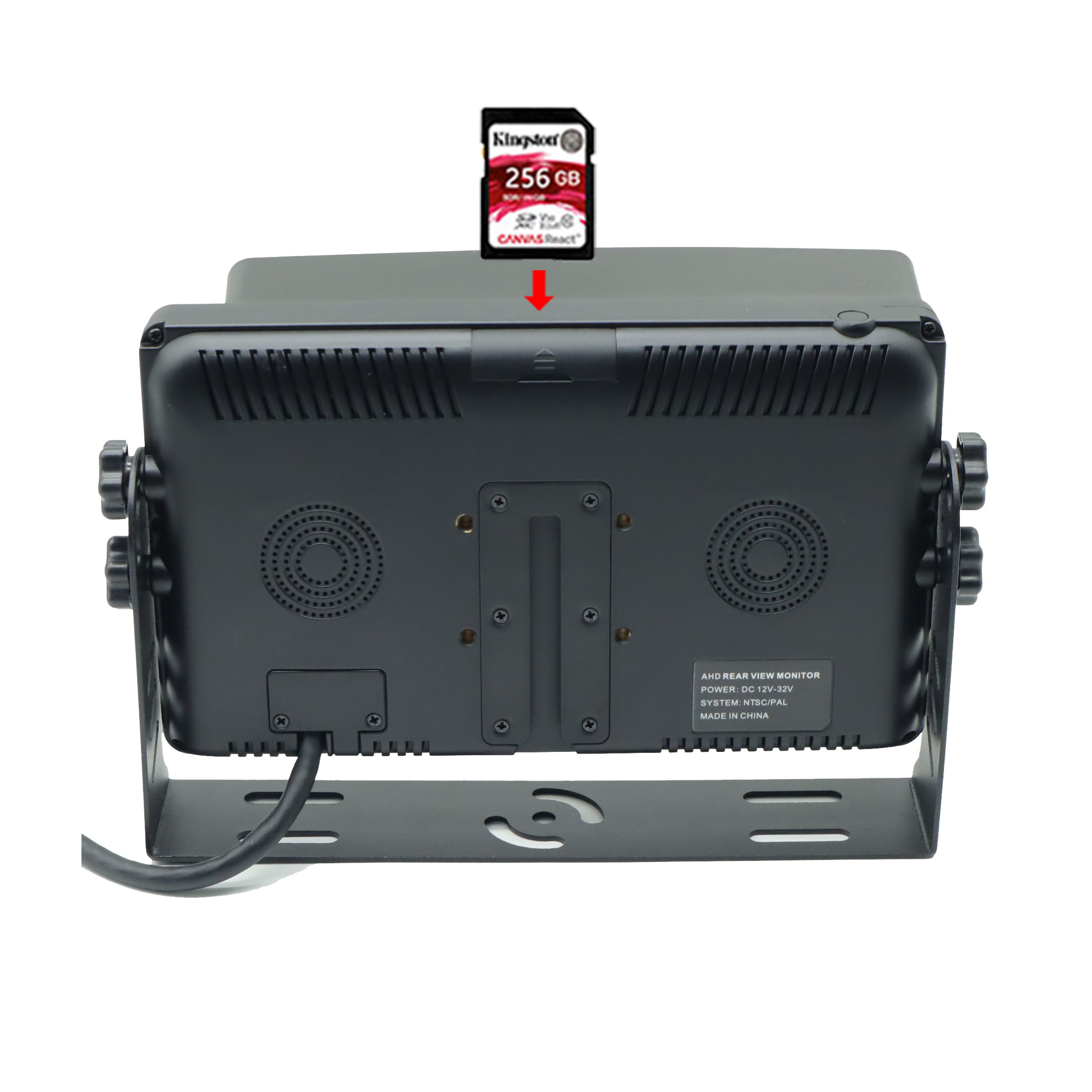 Carleader 7 Inch 4CH AHD ఇన్పుట్ల క్వాడ్ వ్యూ డిస్ప్లే మానిటర్ మద్దతు DVR రికార్డింగ్ ఫంక్షన్, మానిటర్ వెనుక SD కార్డ్ స్లాట్తో గరిష్ట సామర్థ్యం 256GB వరకు ఉంటుంది. లూప్ రికార్డింగ్ ఫంక్షన్తో ఫీచర్లు, కెమెరా వీడియో మరియు ప్లేబ్యాక్ను స్వయంచాలకంగా రికార్డ్ చేయగలవు.