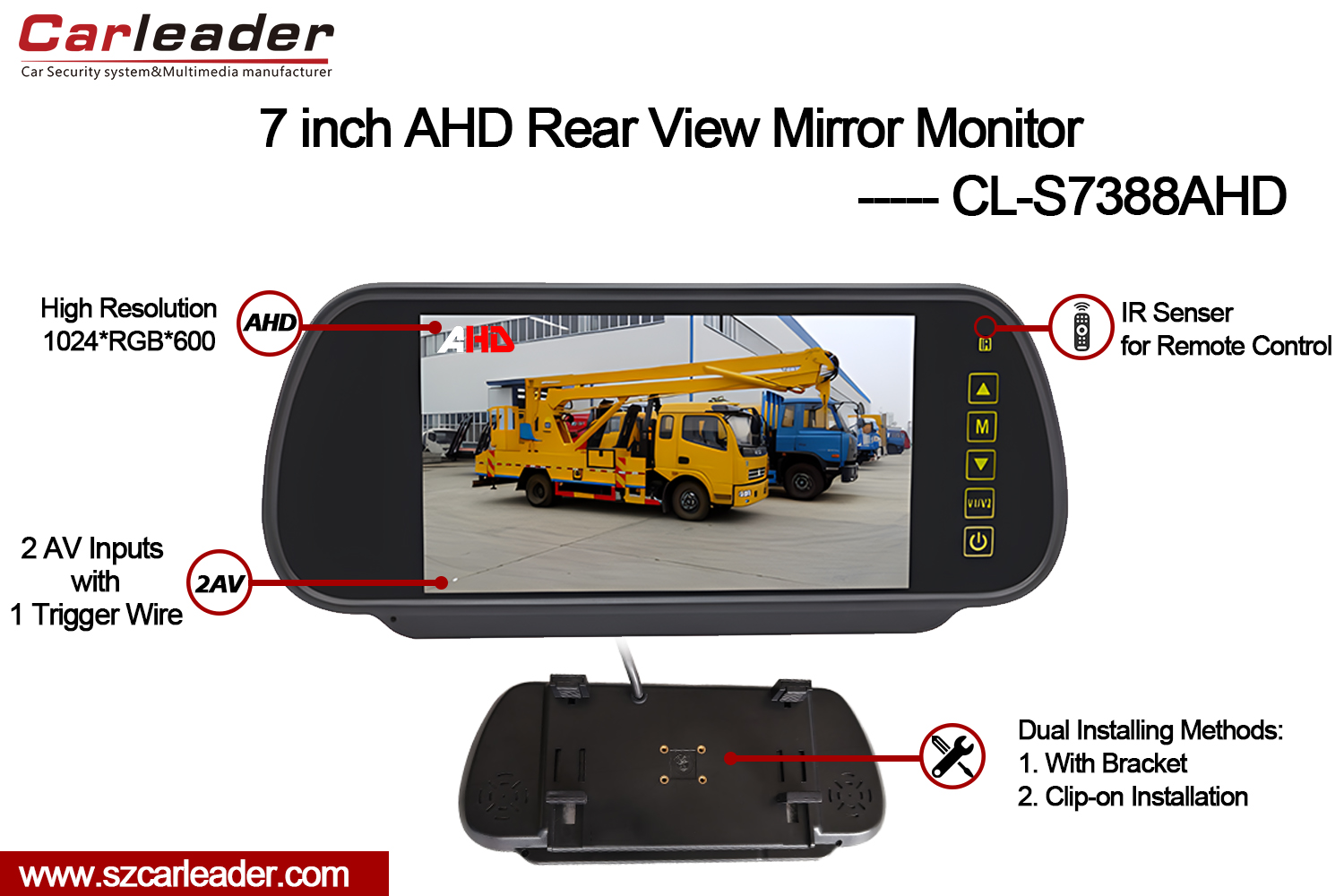 కార్లీడర్7 అంగుళాల TFT LCD రియర్ వ్యూ మిర్రర్ AHD మానిటర్ఆధునిక వాహన పర్యవేక్షణ వ్యవస్థల కోసం అసాధారణమైన స్పష్టత మరియు బహుముఖ ప్రజ్ఞను అందించడానికి రూపొందించబడిన అధిక-పనితీరు గల 7-అంగుళాల కార్ మిర్రర్ AHD మానిటర్. వినియోగదారు-స్నేహపూర్వక డిజైన్తో అధునాతన ఫీచర్లను కలపడం, ఈ మానిటర్ విభిన్న డ్రైవింగ్ పరిస్థితులలో నమ్మకమైన పనితీరును నిర్ధారిస్తుంది.